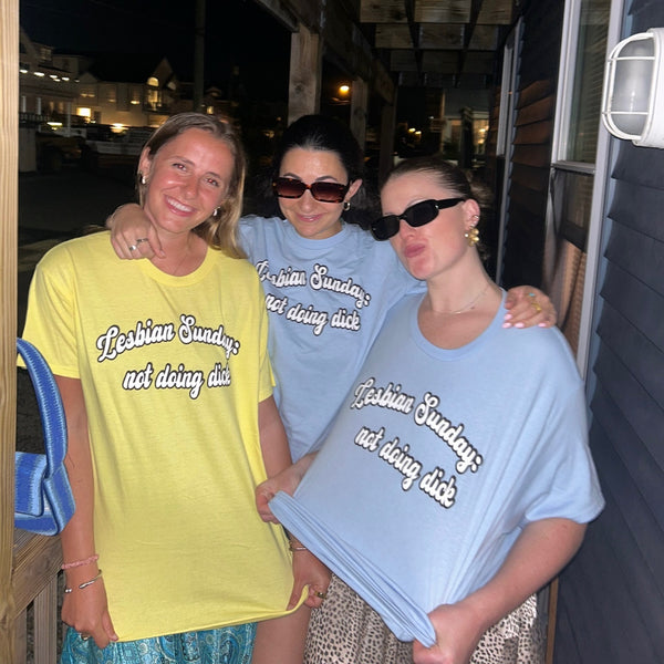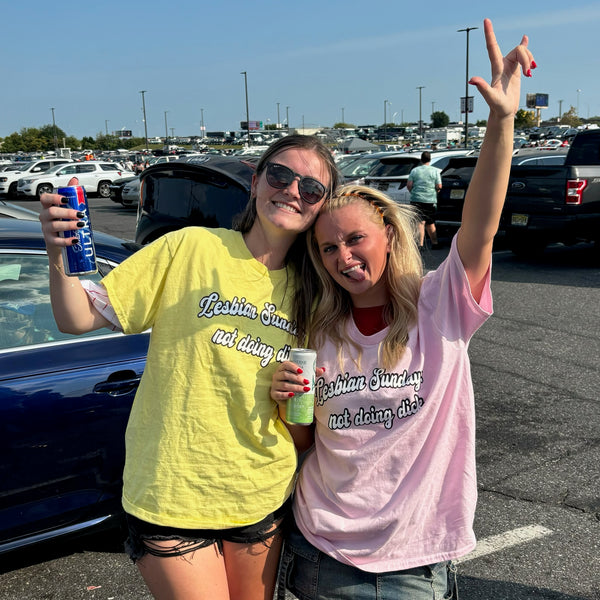 Lesbian Sunday’s Mission To make Sundays great again—by doing absolutely nothing productive. Whether it’s grabbing drinks with friends, sitting on the couch watching football, or lying in bed naked all day. On Sunday's we don't do dick.